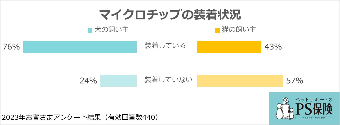 ・マイクロチップの装着率は、犬が76%、猫が43%