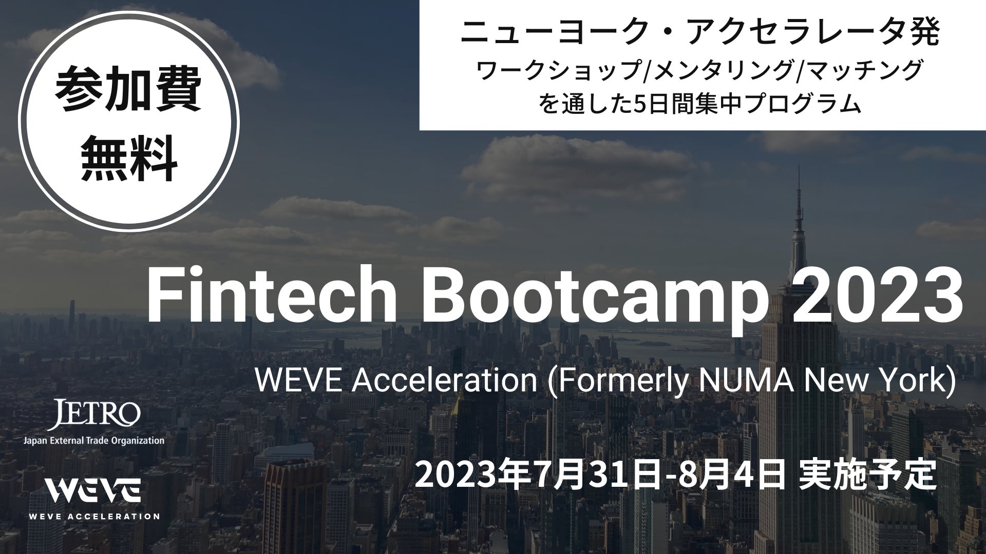 プログラムでは、北米市場のFintechエコシステムの概要や金融機関への営業戦略などを学ぶワークショップ、Fintechに特化したメンターとの1:1メンタリング、有望顧客や投資家とのマッチング機会を提供いたします。北米進出を目指すFintechスタートアップからのご応募お待ちしております。