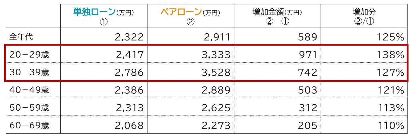 昨年、ミライ研では独自アンケート結果をもとに、住宅ローン利用者の単独ローンとペアローンの現状を調査しました。その結果、20代では約2割がペアローンを利用していること、また、当初借入額では単独ローンよりもペアローンのほうが高額で、特に20代のペアローン借入額は「単独ローンとの比較で150%の水準」となっていることを公表しました。