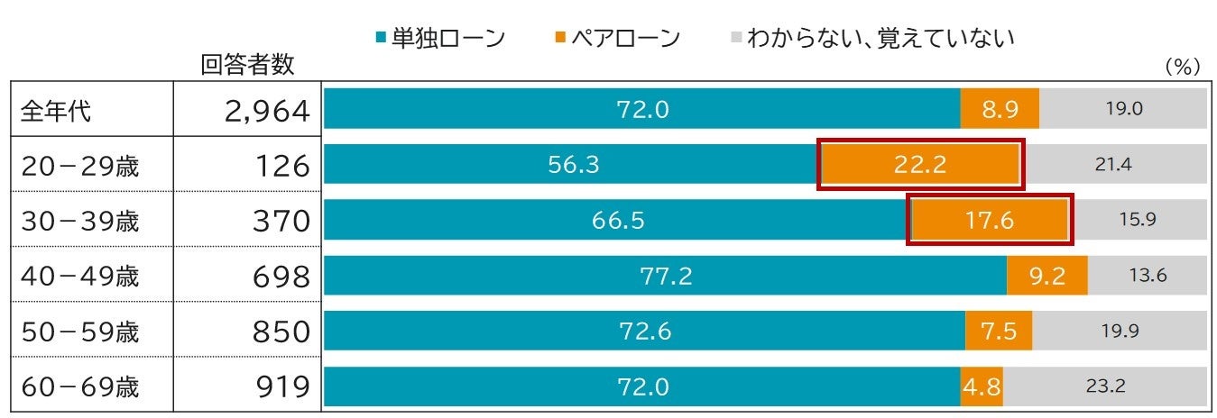 1.20代・30代の住宅ローン利用状況は5人に1人がペアローン