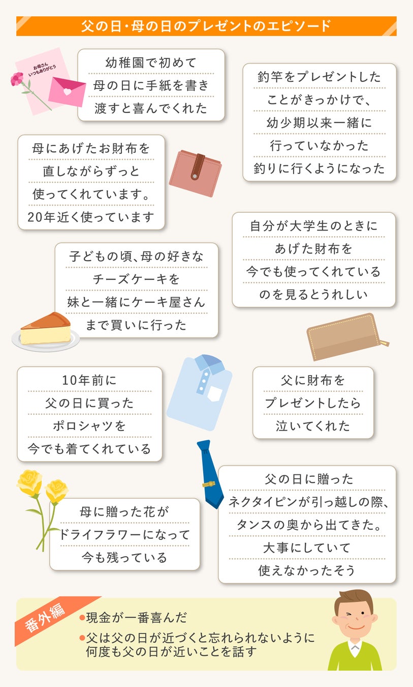 記事で紹介したのはごく一部ですが、子どもから贈られたプレゼントをずっと大切にするお父さん、お母さんのエピソードが多数を占めました。