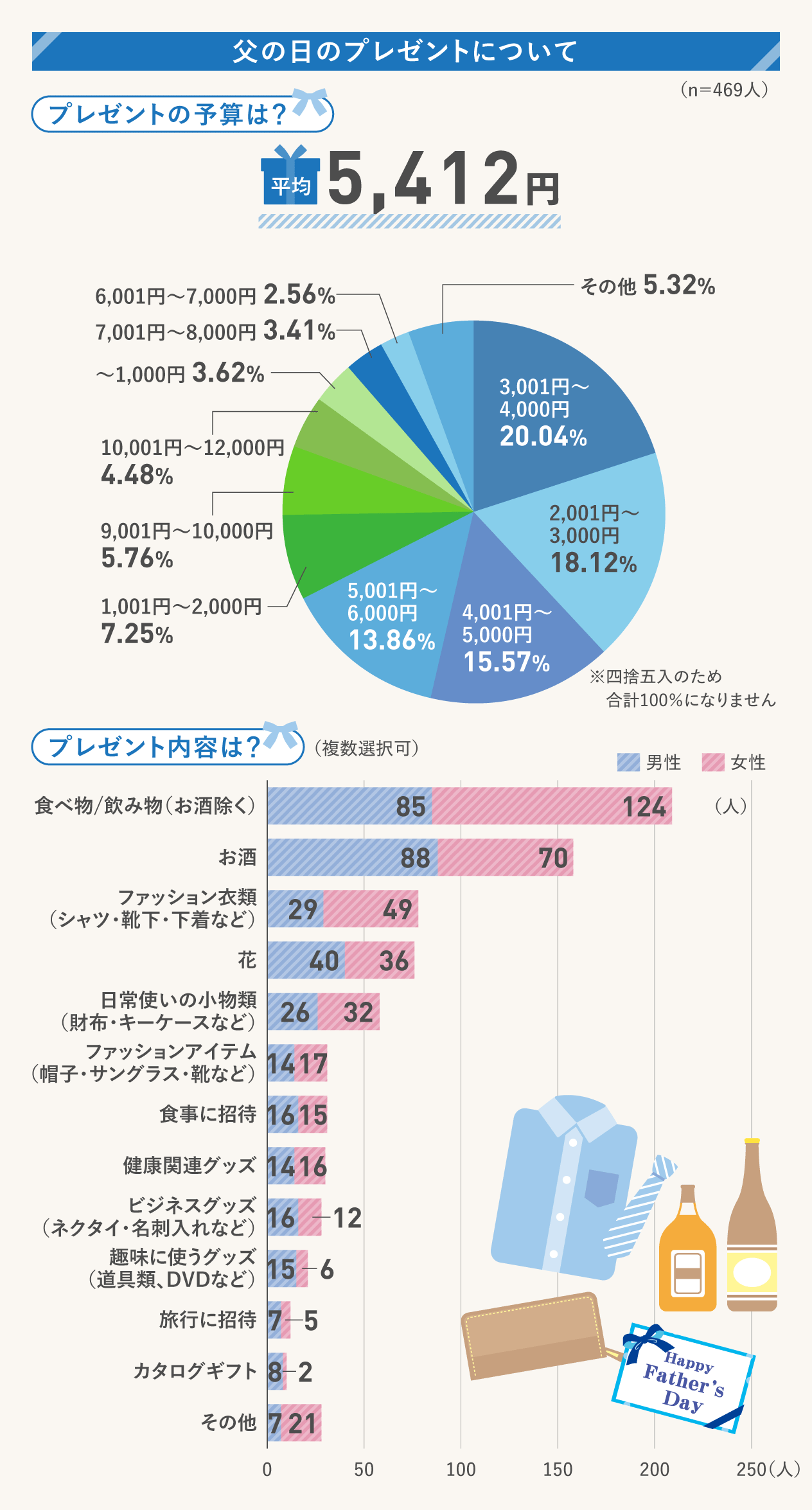 ※父の日のプレゼント予算は平均5,412円!母の日は平均5,411円で1円違いという結果に