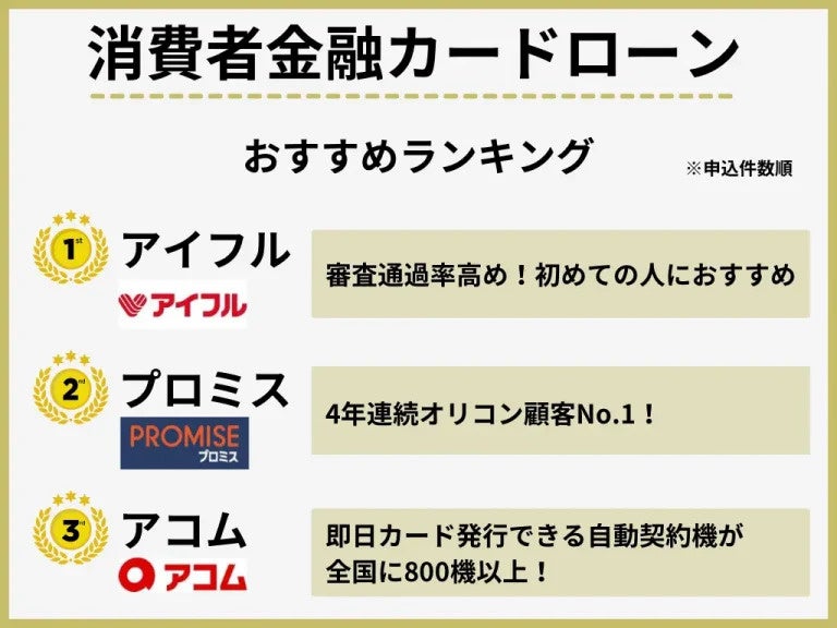 数多くある消費者金融の中でもどの会社がおすすめなのか特徴がわかりやすい「消費者金融カードローンおすすめランキング」を作成しました。