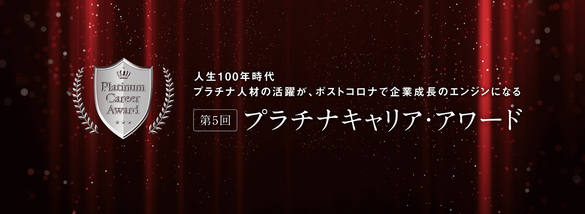 ※「プラチナキャリア・アワード」とは人生100年時代、年齢を問わず自己の成長や所属する企業の発展、ひいては社会課題解決を目指し、自律的に学び、経験を通じてスキルを磨き、得られたスキルを存分に活かして活躍していくキャリア(「プラチナキャリア」)が期待されています。