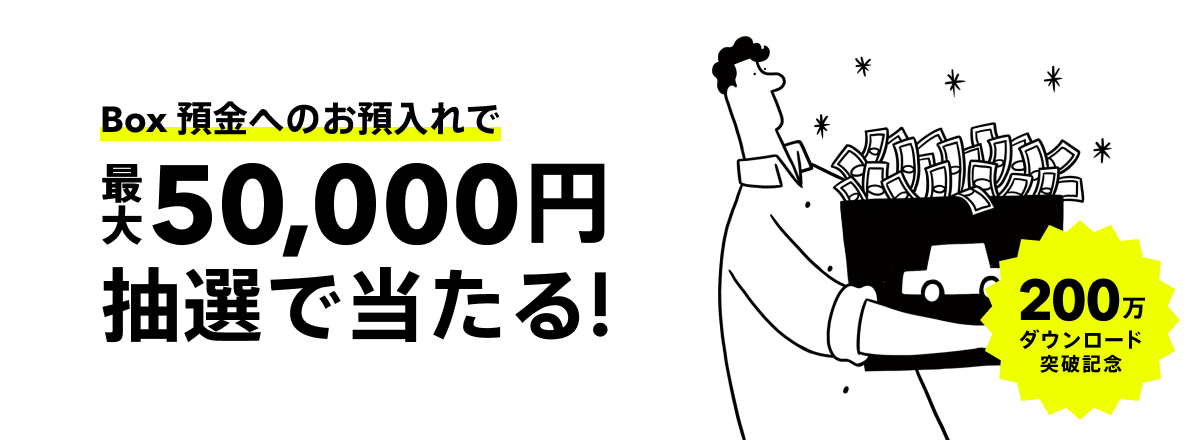 みんなの銀行では、普通預金の口座開設と同時に、貯蓄預金口座も開設されます。貯蓄預金口座には、自動で開設される口座「Saving」と後から作成するバーチャル口座「Box」があり、今回のキャンペーン対象となる残高、および適用金利は両方が対象です。なお、貯蓄預金は定期預金と異なりお金の出し入れは自由です(満期はございません)。また、「Box」は将来の目標に必要なお金や今月支払いに必要なお金など目的に応じて他のお金と分けて管理できる便利な口座です。今使わないお金を「Box」で便利に、かつ、お得に預けていただくことができます。