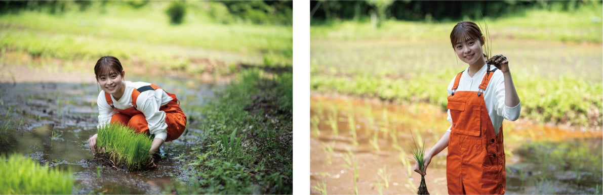 また、SBI FXトレード公式YouTubeチャンネルにて先日配信を開始した『今日の為替ニュース! presented by セント・フォース』にご出演頂いている、株式会社セント・フォース所属キャスターの田﨑さくらさんにも、当社の再生する田んぼにて田植えをお手伝い頂きました。