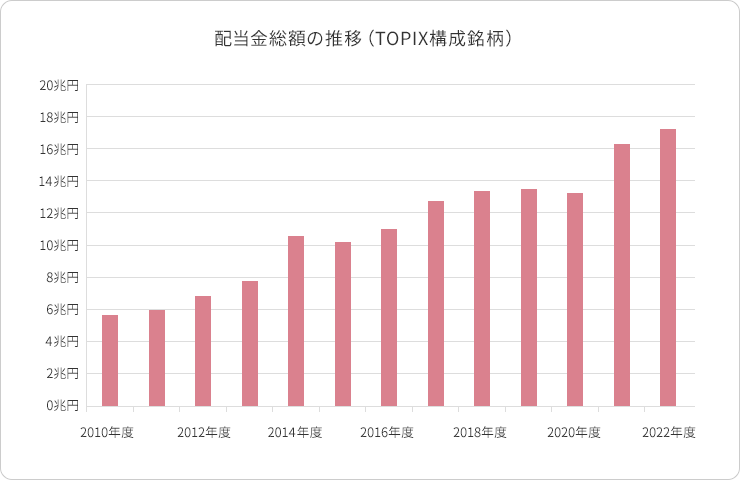 例えば2012年度であれば、「2022年度のTOPIX構成企業の、2012年度の配当金総額」となります。