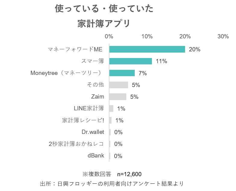 ・使っている/使っていた家計簿アプリ1位は「マネーフォワードME」20%、2位「スマー簿」11%、3位「Moneytree」7%