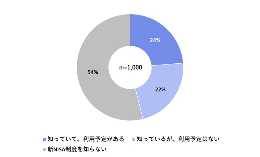 2024年から新しいNISA制度が始まることを「知っていて、利用予定がある」は24%だった。