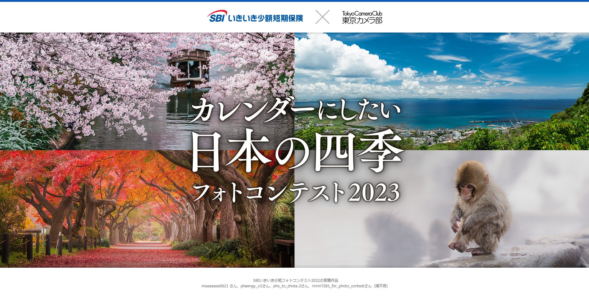 受賞作品がカレンダーになる当社のフォトコンテストは、今回で9回目の開催となり、これまで多くの方にご応募いただいています。今年は「カレンダーにしたい日本の四季」をテーマに作品を募集し、最優秀賞を含めた13点を選定します。受賞者にはAmazonギフト券と、受賞作品で構成した「SBIいきいき少短 2024年オリジナルカレンダー」をプレゼントします。