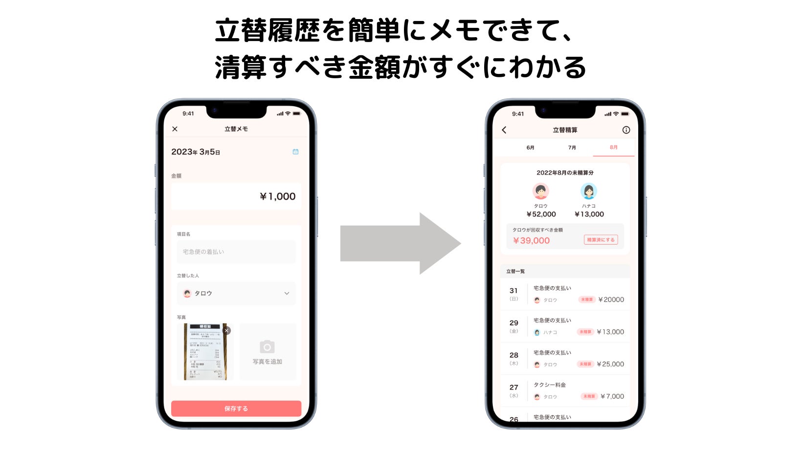 今回の機能追加により、項目名と金額を入力し、立替えた人をするだけで、簡単に立替履歴を記録することができます。記録時にはレシートや領収証書などの写真を添付することもでき、後から内容を簡単に確認することができます。