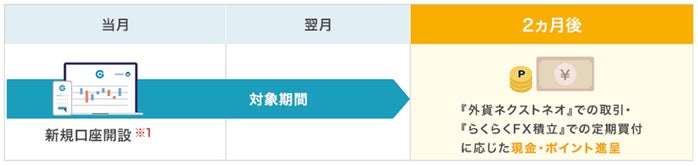 ◆特典① :期間中に『外貨ネクストネオ』にて1万通貨※以上の新規注文のお取引を1回で2,000円キャッシュバック