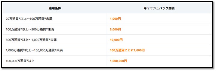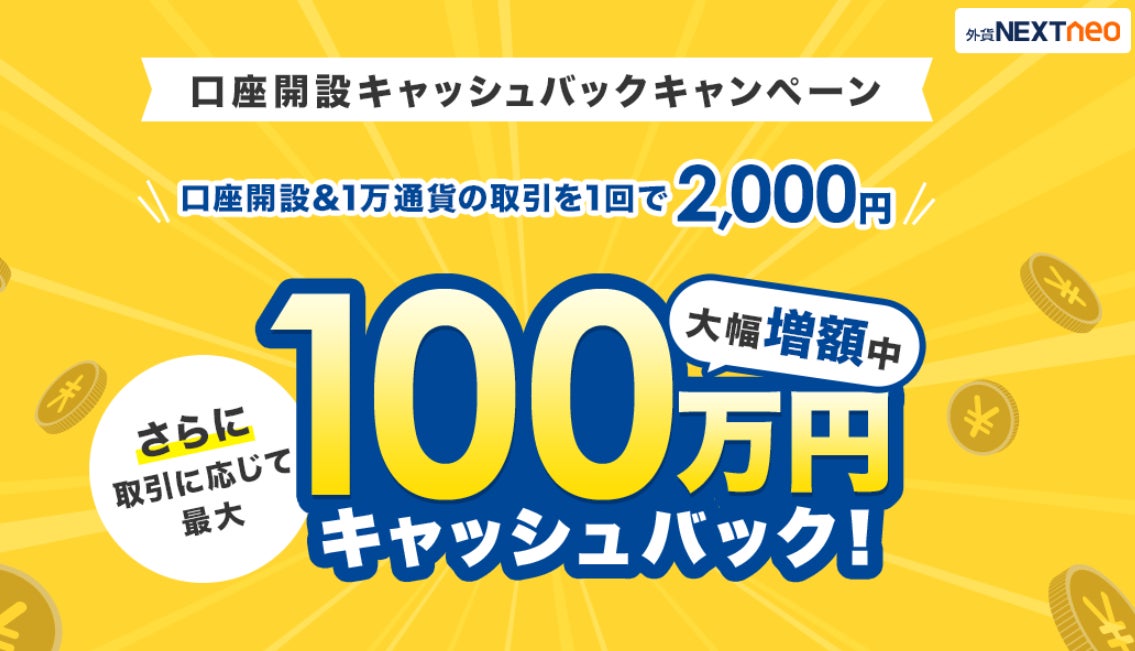 ◆特典② :期間中に『外貨ネクストネオ』にて新規注文のお取引で1,000円~最大1,000,000円キャッシュバック