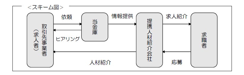 当金庫の本部担当者が取引先企業の求める人材ニーズをヒアリングし、当金庫と提携した人材紹介会社へ情報提供を行い、提携人材会社と連携して円滑なマッチングを進めてまいります。