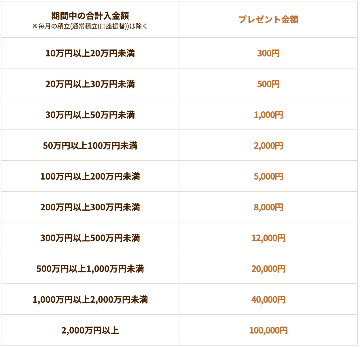 ※毎月の積立(通常積立(口座振替))による入金は対象外です。