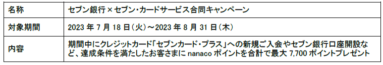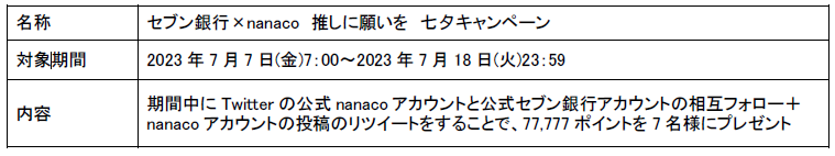 2023 年7 月1 日付でセブン・カードサービスがセブン銀行グループに加わったことを記念して、nanaco ポイントが