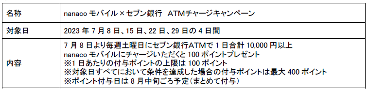 ② nanaco モバイル ATM チャージキャンペーン 概要