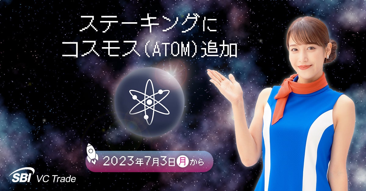 SBI VCトレード株式会社(本社:東京都港区、代表取締役社長:近藤 智彦、以下「当社」)は、2023年7月3日より、「ステーキングサービス」取扱銘柄にコスモス(ATOM)を追加することをお知らせいたします。これにより当社のステーキングサービス取扱銘柄は国内最多である8銘柄となり、今後も順次拡大させていく予定です。(※2023年7月3日現在、当社調べ)