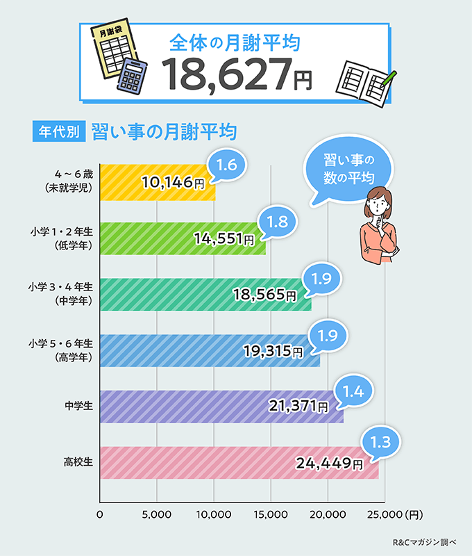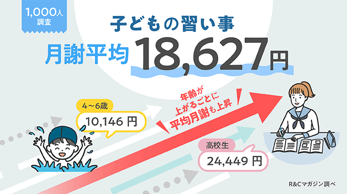 ※子どもの習い事の費用、月謝平均は18,627円!1,000人調査の結果を年齢別に紹介