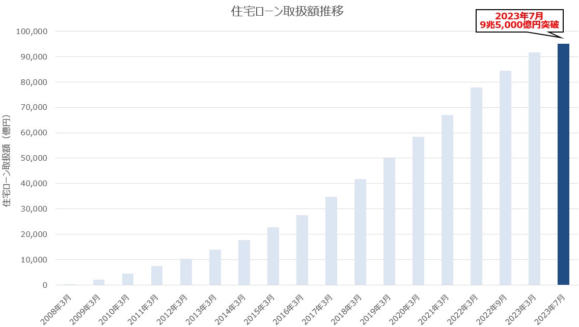 ※1 取扱額とは、住信SBIネット銀行が販売する住宅ローン、住信SBIネット銀行が三井住友信託銀行株式会社(以下「三井住友信託銀行」という)の銀行代理業者として販売する住宅ローン(「ネット専用住宅ローン」)、「フラット35(買取型)」、「フラット35(保証型)」各融資実行額の合計です。「ネット専用住宅ローン」は三井住友信託銀行の商品であり、住信SBIネット銀行が三井住友信託銀行の銀行代理業者として販売する商品です(三井住友信託銀行の窓口およびホームページではお取扱いしておりません)。このため、「ネット専用住宅ローン」のご契約(金銭消費貸借契約)は三井住友信託銀行との契約となりますが、「ネット専用住宅ローン」に関するお申込み・お問合せ等の各種お手続きは住信SBIネット銀行が受付いたします。なお、「ネット専用住宅ローン」の新規申込受付は2023年6月30日をもって終了しており、2023年9月29日をもって、新規お借入れを終了いたします。
