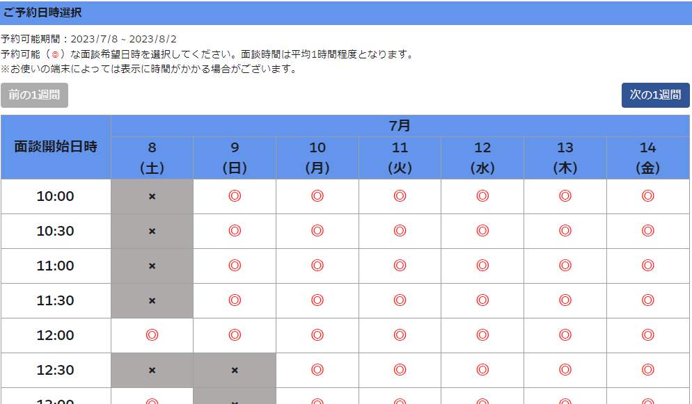 「セゾンのマネナビ」は予約画面上でFPの空き状況が確認でき、オンラインで即時予約ができます。