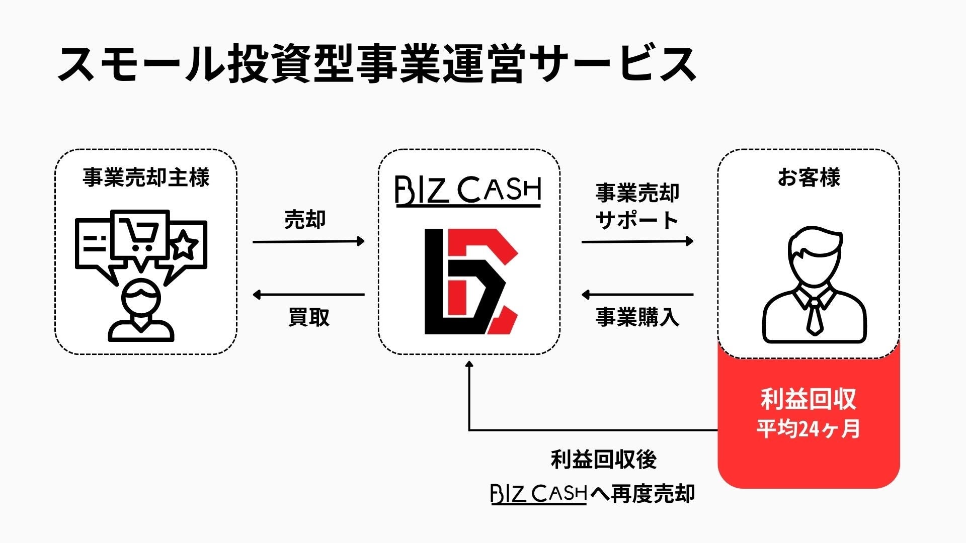 弊社にてお買取りしている事業を(WEB関連事業に限る)ご紹介させて頂き、ご購入頂きます。一定期間、弊社伴奏支援にて運営を行って頂きます。(原則アウトソーシングの為、人や追加リソースは発生しません。)投資分の回収後は再度弊社にてお買取りさせて頂きます。弊社グループ会社にて運用した案件での投資効果は12ヶ月運用後、再度売却して約180%と高い投資効果を獲得する事が出来ました。また直近では投資目的で弊社保有の事業を買収されるお客様が増加し利益回収後、再売却を行い、高い投資効果が安定的に出ている為、新規事業、起業、副業向けにご案内することとなりました。