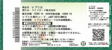 Vプリカ購入後、レジで受け取るチケットに【2,000円当たり!】等の記載があれば当たりです。
