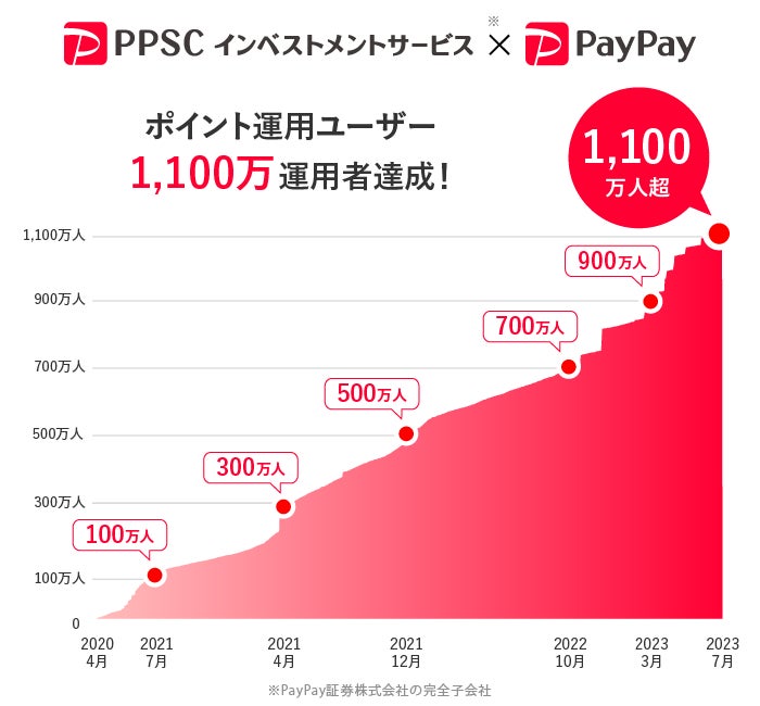 「ポイント運用」サービス開始時点から2023年6月末までのポイント運用者の平均増加率は+16.5%(※4)。増えたPayPayポイントは、「PayPay」での決済や、PayPay証券がPayPayアプリ上で提供する「PayPay資産運用」での有価証券の買付などに使うことができます。