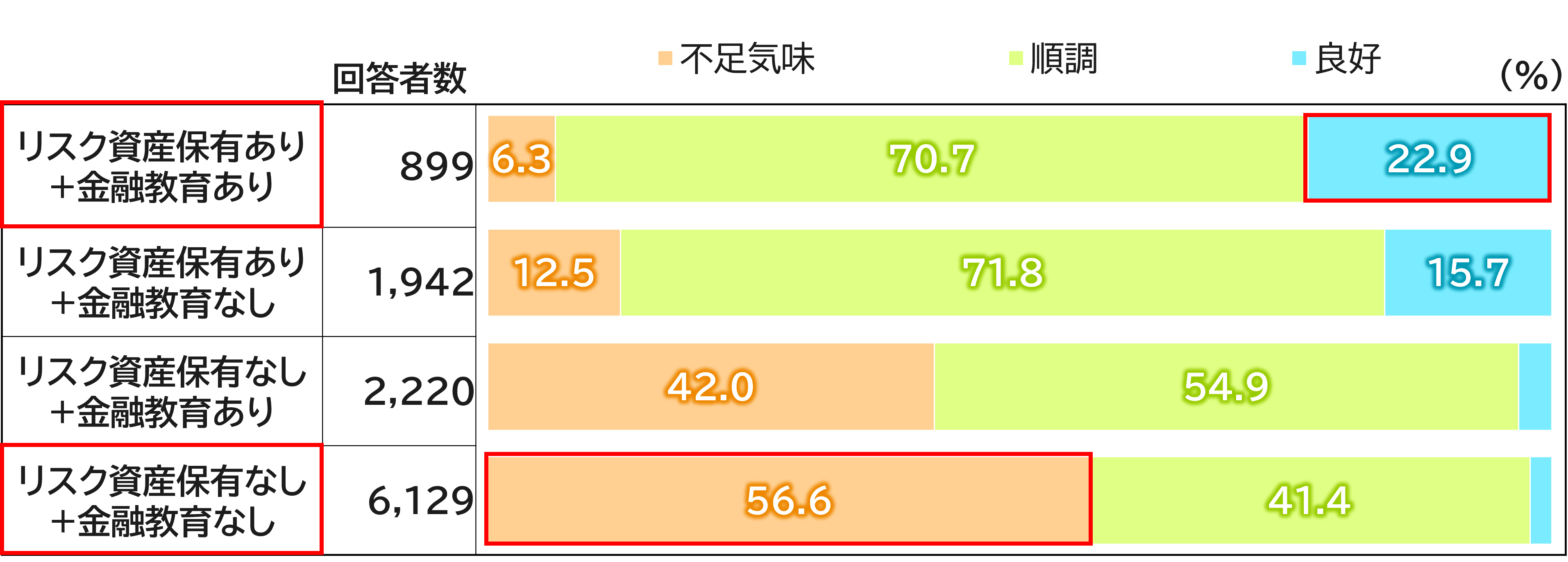 【図表3】「金融教育経験有無」×「リスク資産保有有無」と「金融リテラシー度」