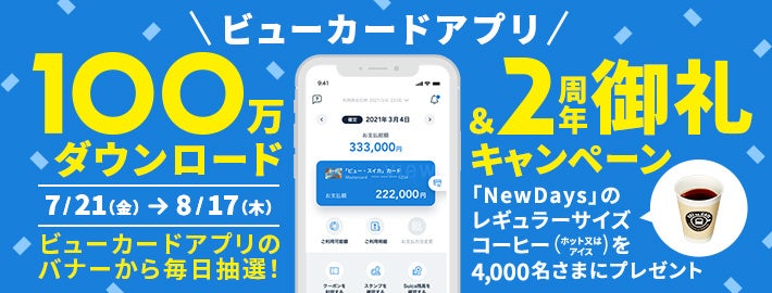 1.キャンペーン名:「ビューカードアプリ100万ダウンロード&2周年御礼キャンペーン」