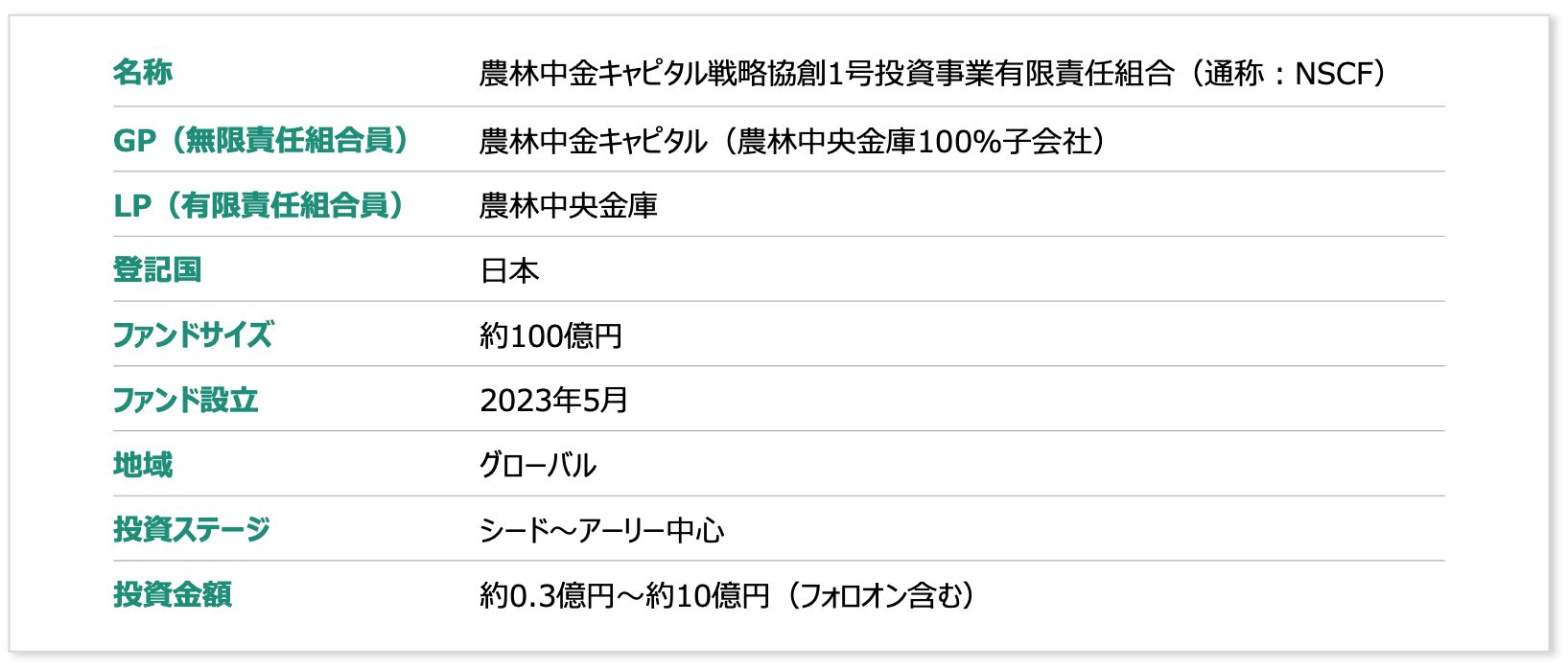 農林中央金庫(代表理事理事長:奥和登)の連結子会社である農林中金キャピタル株式会社(代表取締役社長:和田透)は、スタートアップ企業への投資を目的とした農林中金キャピタル戦略協創1号投資事業有限責任組合(以下「本ファンド」)を設立しましたのでお知らせいたします。