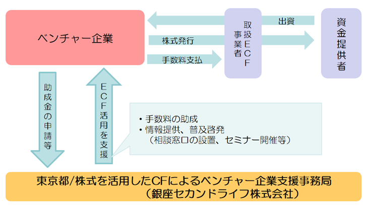 東京都より、ECFの利用に伴う手数料のうち一部、具体的には、利用手数料の3分の2以内で、上限400万円まで支援が行われます。