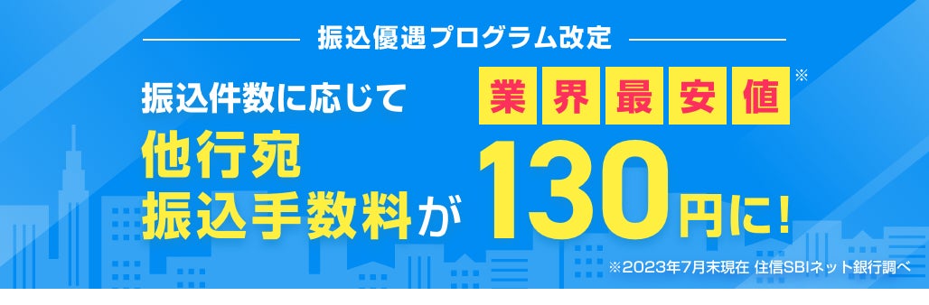 住信SBIネット銀行株式会社(本社:東京都港区、代表取締役社長(CEO):円山 法昭、以下「住信SBIネット銀行」という)は、2023年10月より法人向け「振込優遇プログラム」の内容を改定いたします。