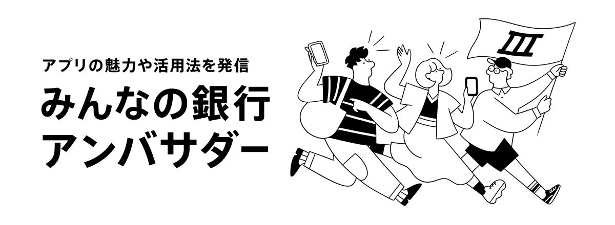 200名を超える応募が寄せられた中から選ばれたアンバサダーの方々と、みんなの銀行アプリやお金と暮らしの課題を一緒に考えるとともに、みんなの銀行の魅力や活用事例を発信していく取組みです。アンバサダーご自身のSNS、みんなの銀行のアンバサダー特設サイトおよび公式note『アンバサダーマガジン』を通じて活動の様子もお伝えしていきます。