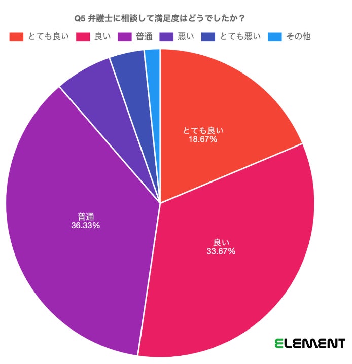 • 80%以上が弁護士に相談して「とても良い〜普通」と回答した