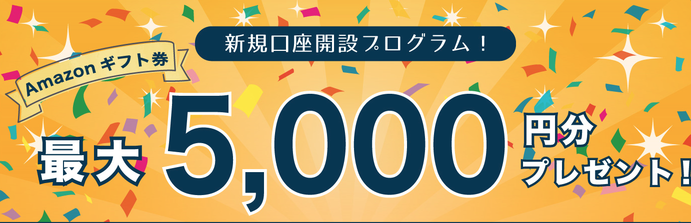 GOファンド株式会社(以下、当社)は、2023年8月1日正午より、「新規口座開設で最大5,000円分のAmazonギフト券をプレゼントするプログラム」を実施いたします。