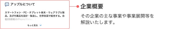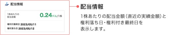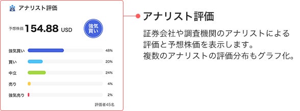 今回、追加した米国株51銘柄を対象に、「企業概要」「配当情報」「アナリスト評価」「業績」などお客さまからご要望を多くいただいた銘柄情報をスマホ上で手軽に確認できる機能を追加しました。