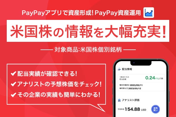 「PayPay資産運用」は、「PayPay」上のミニアプリでPayPayマネーとPayPayポイントを使って100円(ポイント)から有価証券を購入できるサービスで、2023年7月8日に初めての取り扱いとなる米国株51銘柄を含む67銘柄・コースを追加しました。