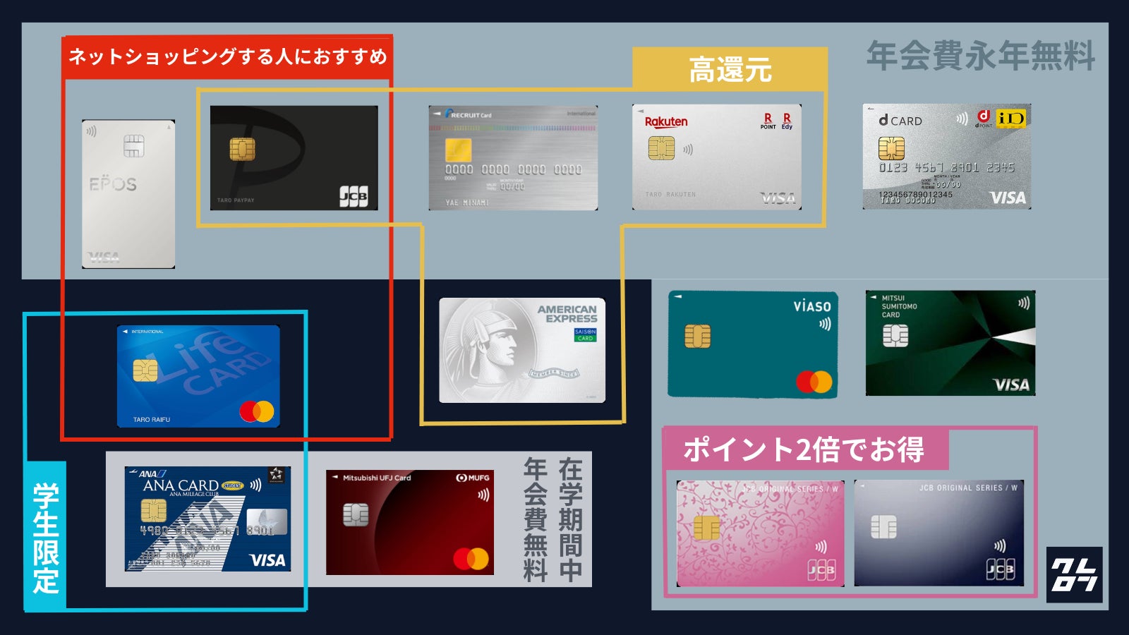 上記の中から自身の目的に合ったクレジットカードを選ぶのが良いと思います。