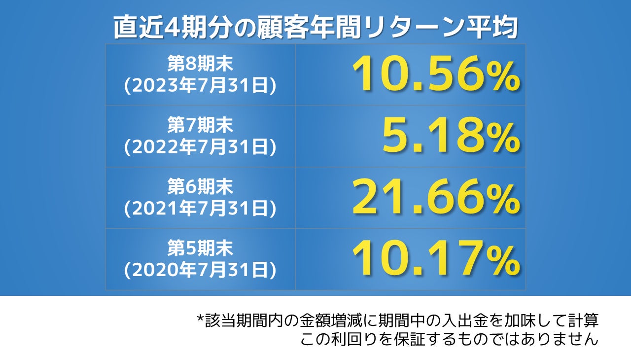 第8期末時点と第7期末時点を比較した顧客の年間リターン平均は10.56%*でした。