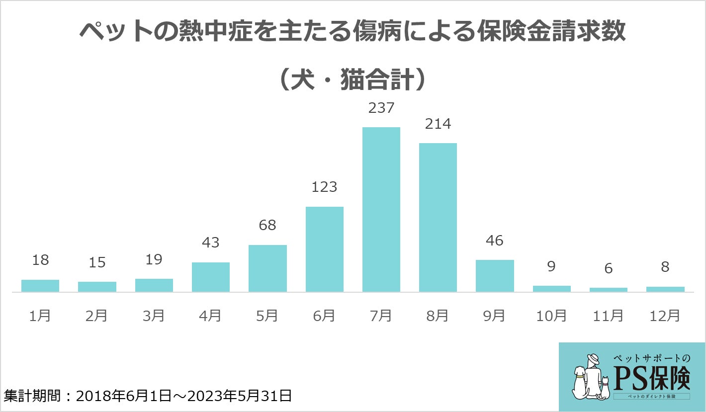 本リリースでは、当社の保険契約において、熱中症を主たる傷病による保険金請求を受けた件数の月別集計結果として、実際に犬や猫の熱中症が起こりやすい時期を紹介します。