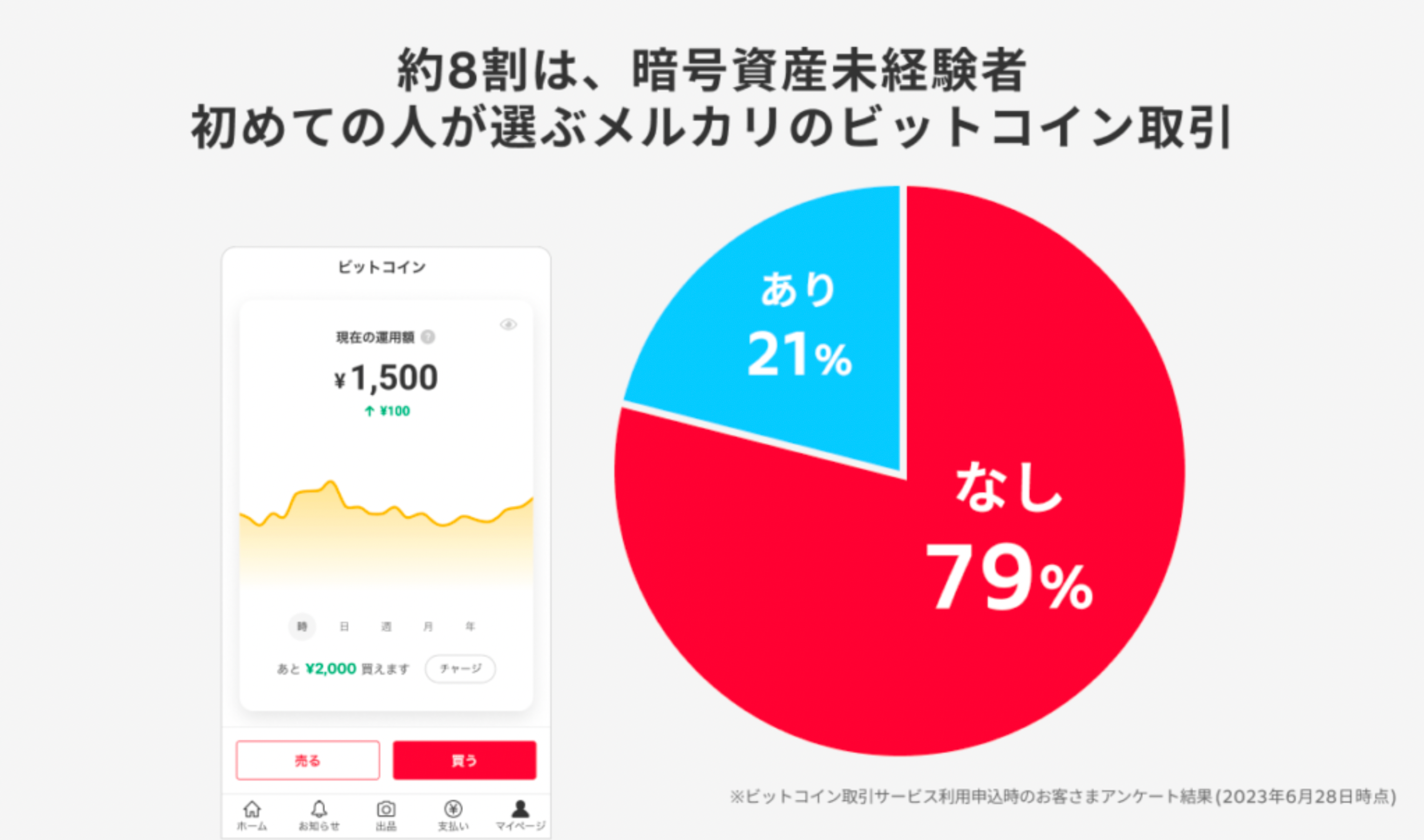 ※6: 「メルカリ」ビットコイン取引サービス申し込み時のお客さまアンケート調査結果(2023年6月28日時点)