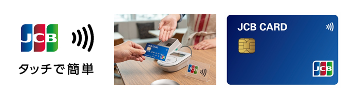 JCBのタッチ決済(JCBコンタクトレス)は、お持ちのJCBカードや、JCBカードを登録したスマートフォンなどをお支払いの端末にかざすだけでショッピングができる非接触決済です。