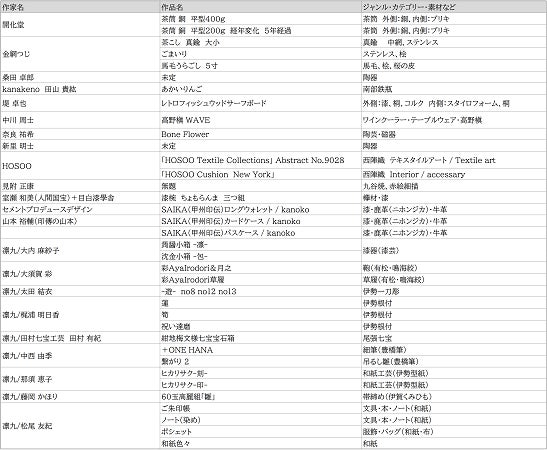 [1]8月22日より開始する三菱UFJ銀行本館で展示する工芸作家一覧