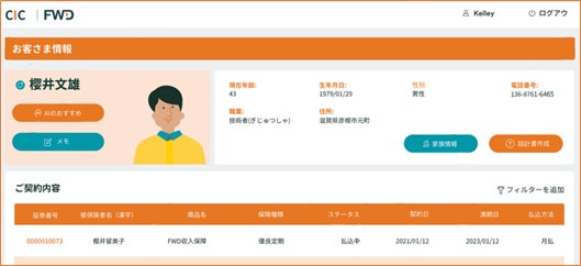 FWD生命保険株式会社(本社:東京都中央区、代表取締役社長兼CEO:山岸英樹)は、Customer Intelligence Center(以下「CICシステム」)を募集代理店に提供することをお知らせします。