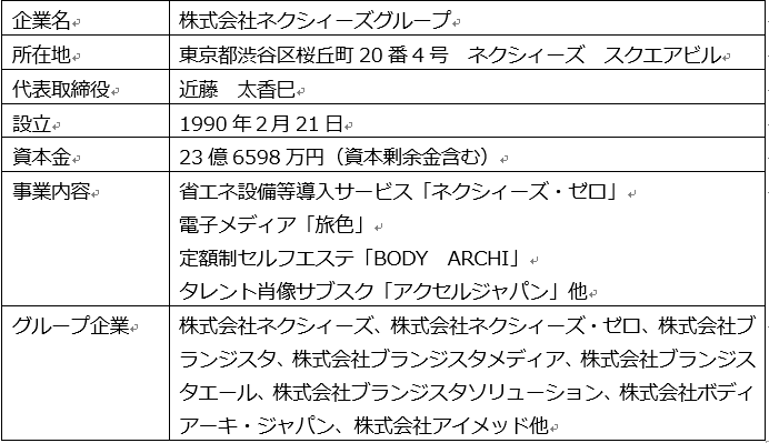 ネクシィーズグループは、これまで、携帯電話、衛星放送、ETC、インターネットなど、時代が必要とするサービスを日本トップクラスで普及させてきました。社会の急速な変化に対応した課題解決を理念に、現在は初期投資オールゼロでLED照明や業務用空調など、最新の省エネルギー設備の導入サービス「ネクシィーズ・ゼロ」を手掛けております。2007年に電子メディア市場へ、2018年にはエステ&フィットネス市場にも参入しています。タレント肖像サブスクや医療分野など新しいビジネスモデルにも積極的に取り組んでいます。
