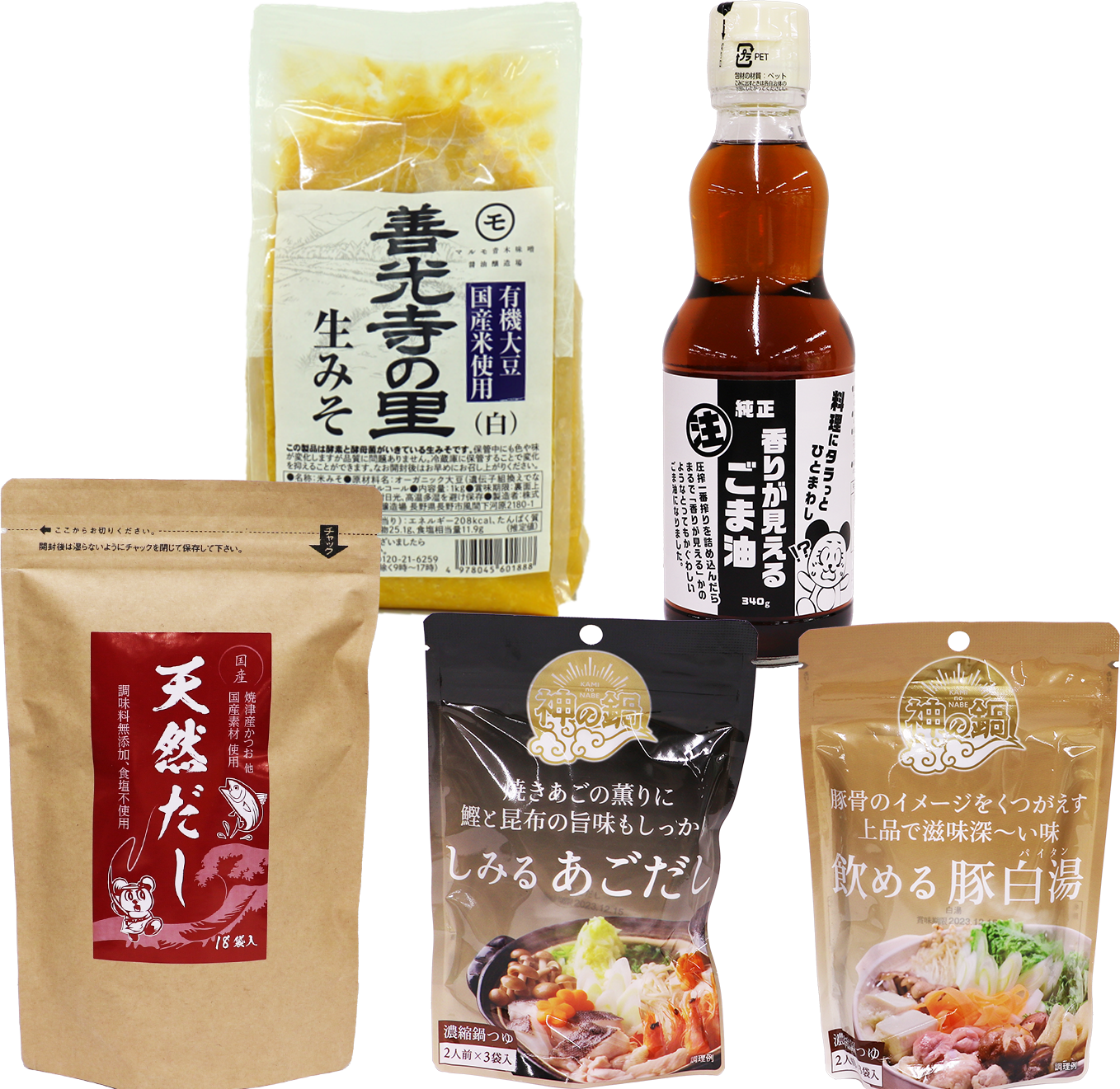 寒い冬にぴったりのお鍋が楽しめる調味料5点セットです。