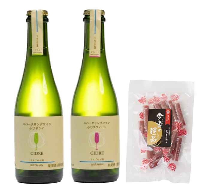 甘味と酸味のバランスが程よい長野県山形村産のふじりんごの特長を活かした、爽やかな口当たりで飲みやすいスパークリングワインです。