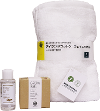 いを与えるホホバオイル、アイランドコットンフェイスタオルのセットです。