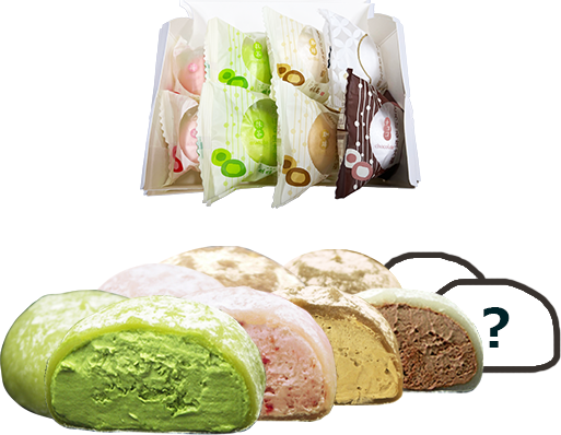 品です。定番3種(抹茶・苺・珈琲)と期間限定2種(チョコ・シークレット)の8個入りセットを冷凍便でお届けいたします。